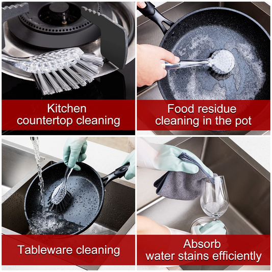 CLEANHOME Collapsible Cleaning Bucket Multipurpose Kitchen Set with Rubber Gloves,with Rubber Gloves,Angle Brush for Pot and Pan, Watering Can, 6 Microfiber Cleaning Cloths for House, Kitchen, Window