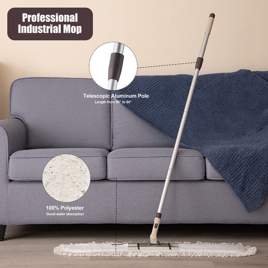 Eyliden 36" Professional Industrial Dust Mop, Commercial Cotton Dust Mops Broom, Telescopic Handle Residential Commercial Floor Cleaning Tools for Home Mall Hotel Office Garage Dust Mop (White, 36")
