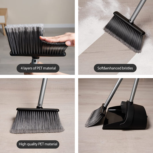 Eyliden Broom Dustpan Set, Broom and Dustpan Combo with 52" Long Handle for Lobby Kitchen Room Office Indoor, Dustpan with Broom Set for Home, Floor Use Lobby Dust Pan Sweep Combo Black