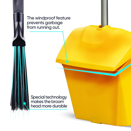 Yocada Heavy Duty Broom and Dustpan Set Commercial Outdoor Indoor 2+1 Perfect for Courtyard Garage Lobby Mall Market Floor Home Kitchen Room Office Pet Hair Rubbish