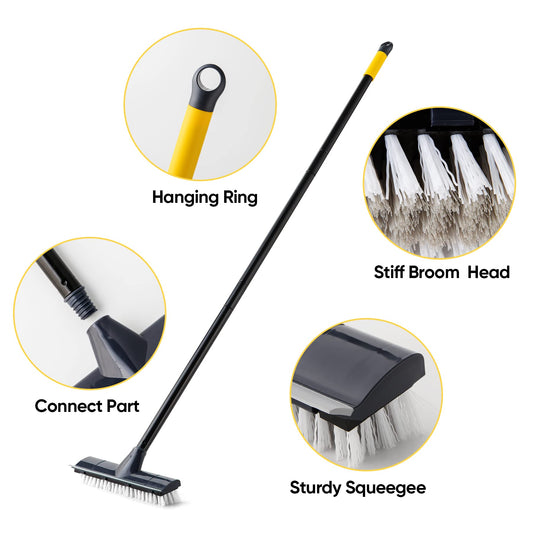 Yocada Floor Scrub Brush 50" Handle 2 in 1 Scrape Brush Stiff Bristle Shower Scrubber for Cleaning Patio Bathroom Garage Kitchen Wall Deck Tub Tile