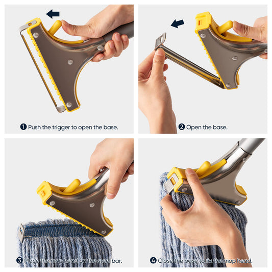 Yocada Looped-End String Wet Mop Heavy Duty Cotton Mop Commercial Industrial Grade Telescopic Iron Pole Jaw Clamp Floor Cleaning 55.1"